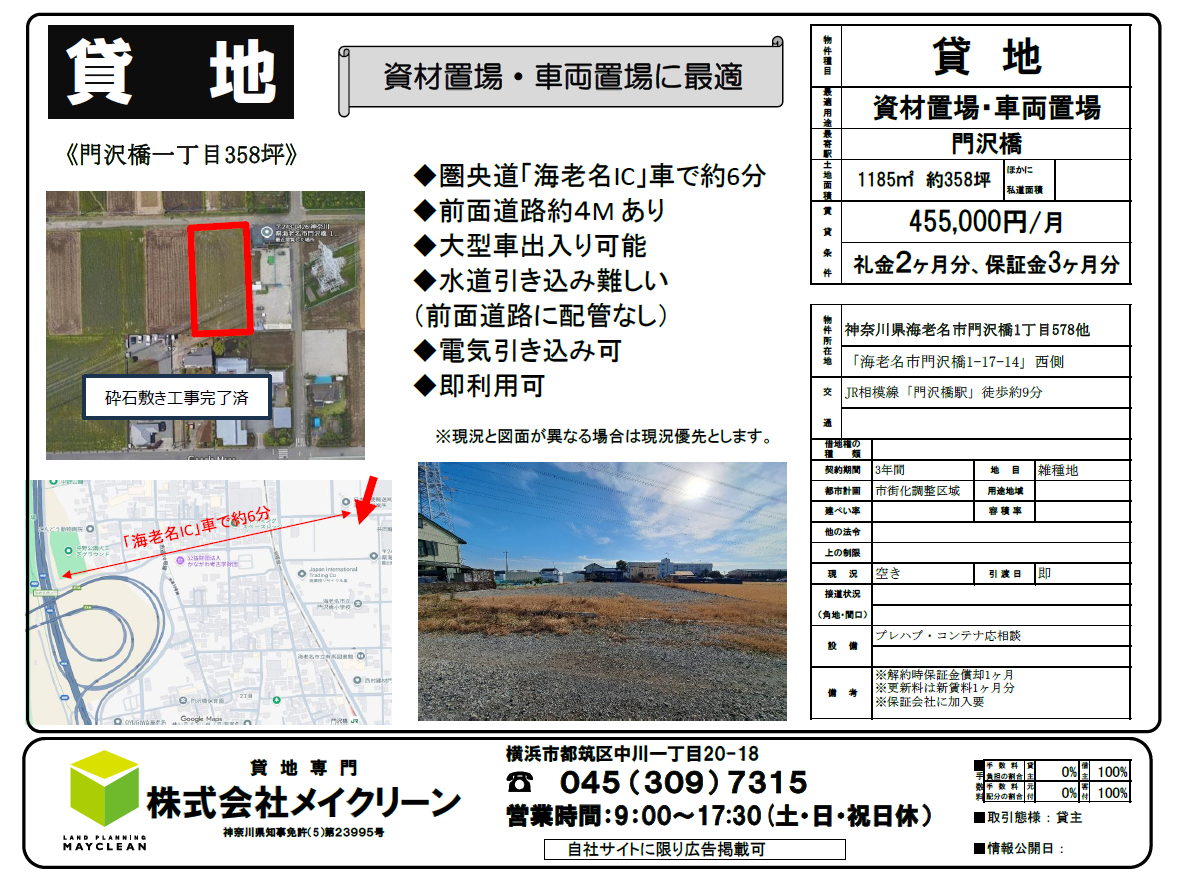 | 所在地* | 神奈川県海老名市門沢橋1丁目578他 |